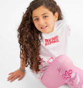 This leggings is crafted from stretchy poly knit fabric, offering superb freedom of movement. The elastic waistband ensures a snug, comfortable fit.. Adding a special touch, the playful patterns on each pair are drawn by kids, making them as unique and vibrant as the young artists themselves!