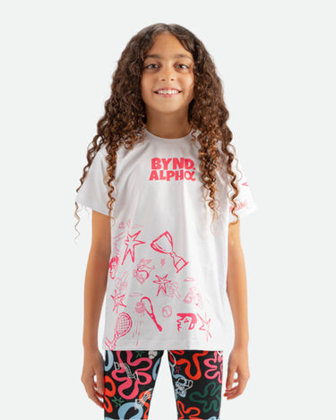 This go-to t-shirt, crafted from soft cotton/polyester, is ideal for the active and imaginative alpha kid. Comfortable and flexible, it sports unique, kid-created patterns that add a splash of fun and uniqueness.