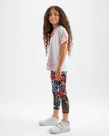 This leggings is crafted from stretchy poly knit fabric, offering superb freedom of movement. The elastic waistband ensures a snug, comfortable fit.. Adding a special touch, the playful patterns on each pair are drawn by kids, making them as unique and vibrant as the young artists themselves!